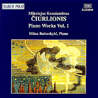 Piano Works CD1 - Le premier disque propose les oeuvres de jeunesse de Ciurlionis. Ces pièces pour piano sont imprégnées de l'influence romantique du 19e siècle. Elles ont été composées pendant les années 1898 et 1902. A travers ces oeuvres, la riche trajectoire du compositeur peut être suivie. Les influences du Conservatoire de Varsovie (Sonate VL-155), de l'Ecole Supérieure de Musique de Leipzig (Dainele VL-199), et de la Lituanie sont toutes présentes. Surtout les motifs folkloriques lituaniens et la beauté de la nature de sa ville, Druskininkai, ont inspiré le compositeur à écrire presqu'une oeuvre par jour lors d'un heureux été en 1901. Alexandre Serain Shuvaloff